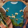 Letni damski T-shirt Kwitnące morze kwiatów Kolorowe kwiaty Pełny nadruk Damski rekreacyjny wszechstronny top z krótkim rękawem