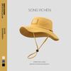 Japanese Outdoor Travel Mountaineering Sun Protection Hat Men and Women Summer Large Bridle Western Denim Sunshade Drawstring Fishing Fisherman Hat