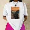 Scared Cat Print Crew Neck Women's T-shirt Casual Short Sleeve Top for Spring Summer Y2k Top Women's Clothing Y2k Top
