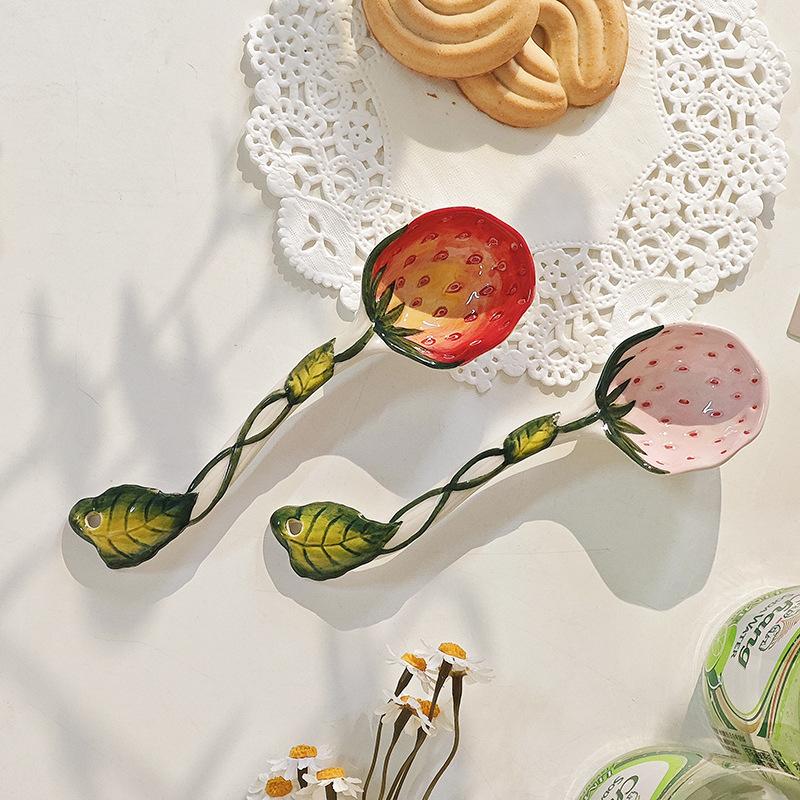 Ceramiczna łyżeczka do truskawek High-Y, ręcznie malowany wzór kwiatowy, łyżeczka deserowa do domu, kuchni i na prezenty