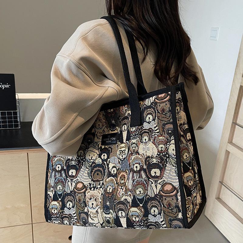 Summer Women's Bag Women's New Large Capacity Women's Commuting Canvas Bag Printed Hand Tote Bag Shoulder Bag