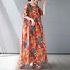Letnia nowa prosta bohemiczna długa sukienka pogrubiona i powiększona z krótkim rękawem z okrągłym dekoltem sukienka z nadrukiem odzież damska
