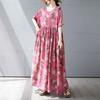 Letnia nowa prosta bohemiczna długa sukienka pogrubiona i powiększona z krótkim rękawem z okrągłym dekoltem sukienka z nadrukiem odzież damska