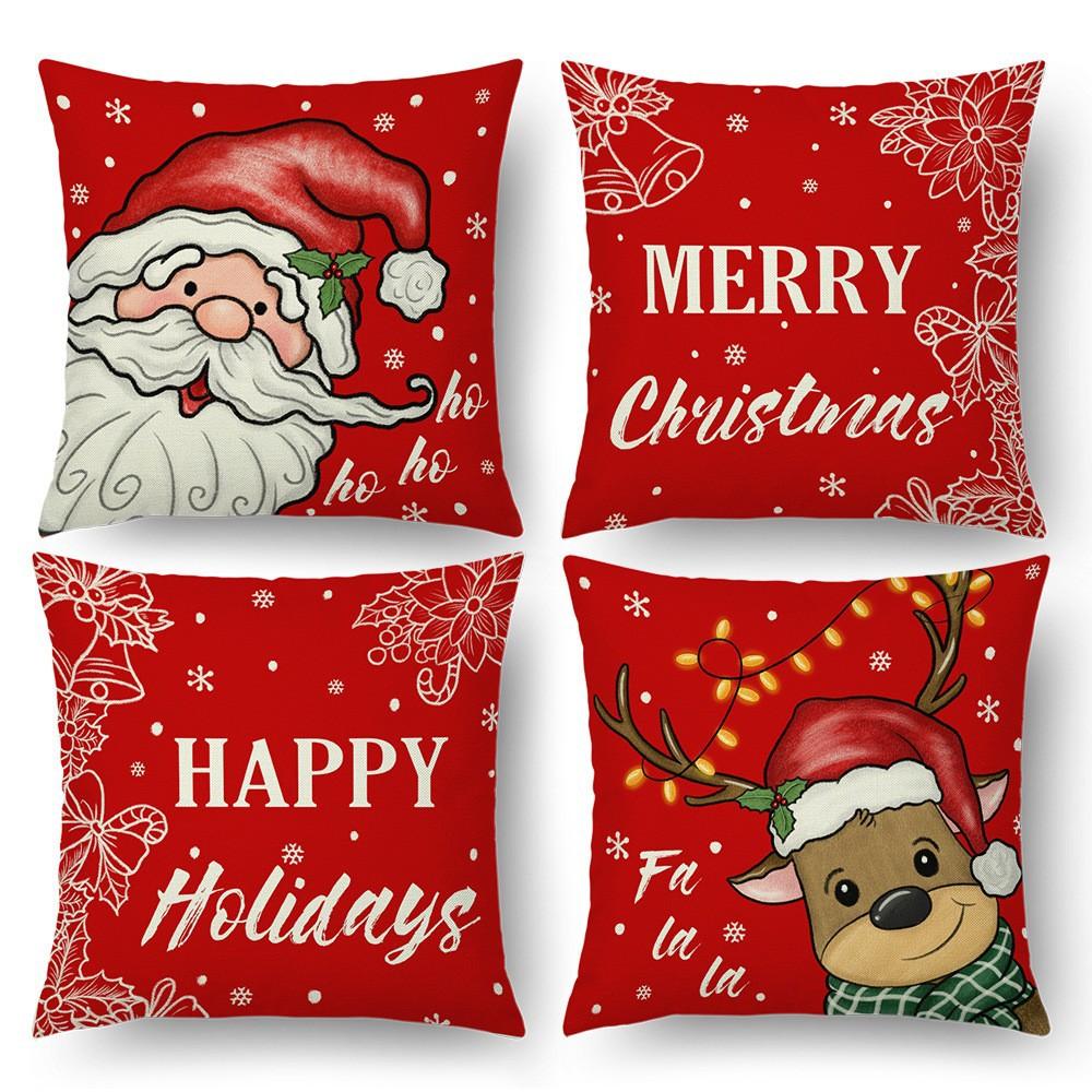 New Linen Short Plush Printed Elk Christmas Pillowcase Home Sofa Cushion Cover