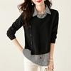 Fałszywy dwuczęściowy sweter bluzka kołnierzyk bluzki sweter ubrania wiosenne i jesienne styl zachodni w paski koszulka bazowa