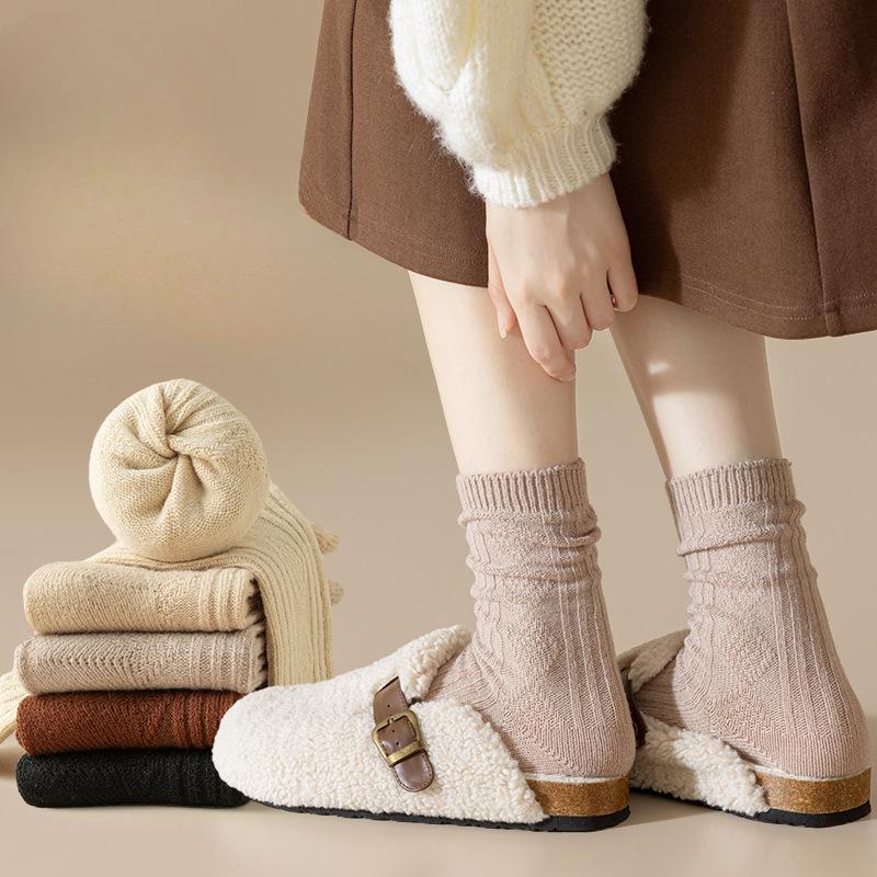 Female Autumn and Winter Plus Velvet and Thick Month Son Wool Long Pile Socks