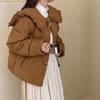 Hooded horn buckle down jacket women's short 2025 winter Korean sweet small thickened bread jacket tide