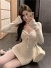 Damska Słodko-Pikantna Sukienka z Długim Rękawem, Czarna, Dopasowana, na Jesień/Zimę 2024