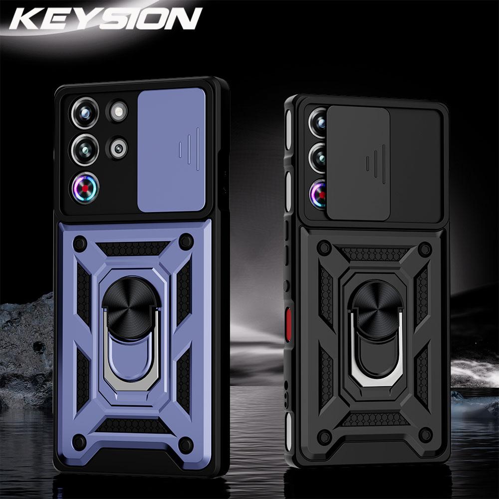 KEYSION Shockproof Case for ZTE nubia RedMagic 10 Pro+ Slide Camera Protection Ring Stand Phone Cover for RedMagic 10S Pro+ 5G