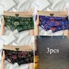 3pcs American Men's Underwear Retro Men's Underwear Ice Silk Breathable Flat Corner Pants Printed Four Corner Pants Boxer Brief