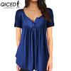 QICED Modne damskie bluzki i koszule z krótkim rękawem, na co dzień w jednolitym kolorze