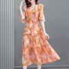 Long Dress Female Summer Loose Thin Waisted Printed Casual Vacation Seaside Skirt