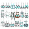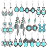 Kolczyki wiszące Boho w kolorze antycznego srebra dla kobiet, turkusowy wzór, kolczyki z frędzlami, styl etniczny, do pracy, na co dzień, prezenty, wszechstronne