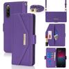 Etui z podstawką dla Sony Xperia 10 IV 5G, tekstura krzyżowa, skóra PU, portfel, pokrowiec na telefon z paskiem na ramię/lusterkiem do makijażu