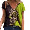 Summer Refreshing and Comfortable V-neck 3D Rose Print Casual Short Sleeved Loose Women's T-shirts
