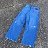 Podarte dżinsy z czerwonymi haftowanymi detalami, podarte spodnie dżinsowe dla mężczyzn i kobiet