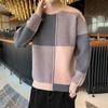 Autumn and winter micro-expansion plaid contrasting colors versatile casual fashion crew neck sweater men's knitted sweater men's top