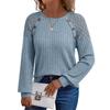 Women's Square Collar Pit Stripe Frosted Solid Color Top Long Sleeved Button T-shirt