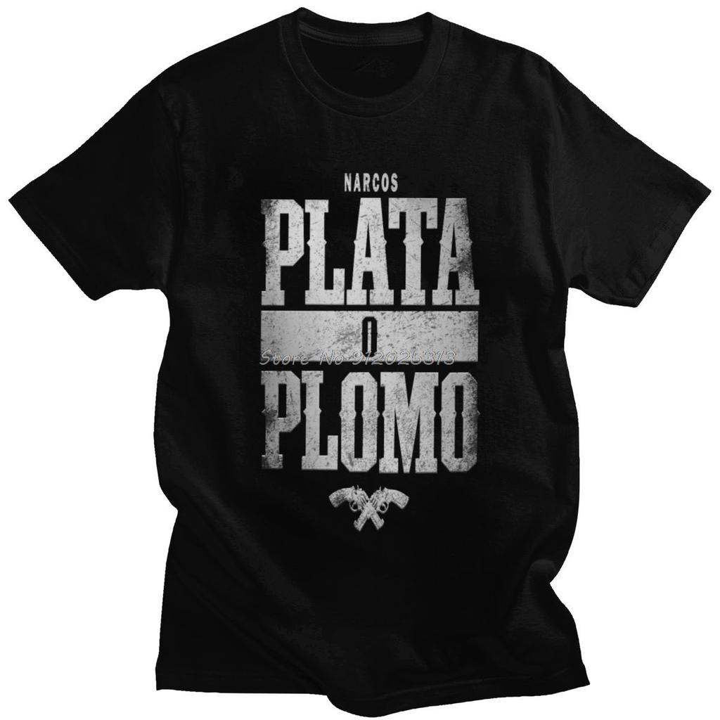 Fajne męskie koszulki Pablo Escobar z krótkim rękawem, topy z okrągłym dekoltem, bawełniana koszulka, casualowa koszulka Plata O Plomo, ubrania o luźnym kroju, prezent