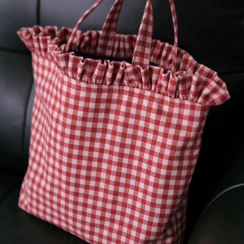 Modna Niszowa Retro Japoński Styl Mała Kraciasta Koronkowa Torebka Ręczna Torba