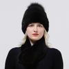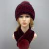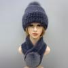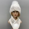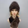 Zimowy Ciepły Damski Zestaw Czapka Szalik Dzianinowa Czapka z Pomponem Pokryta Futrem Norki Szalik z Naturalnego Futra Wysokiej Jakości