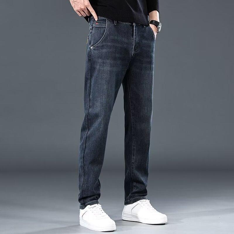 Męskie jeansy wiosenne i jesienne proste luźne spodnie nowe slim elastyczne casualowe jeansy