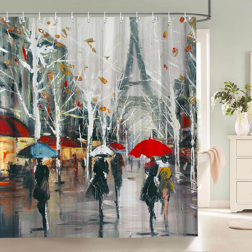 Wieża Paryska Krajobraz Paryża Zasłony Prysznicowe Łazienka Wodoodporna Zasłona Kąpielowa Tkanina Poliestrowa Zasłona Kąpielowa 180*180cm