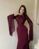 Luksusowa jesienna sukienka wieczorowa wyszczuplająca z rękawem nietoperz dla kobiet