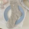 Szaro-białe Skarpetki, Damskie Skarpetki do połowy łydki z kokardą, Letnie Cienkie Siateczkowe Ażurowe Jednokolorowe Uniwersalne Skarpetki Frotte