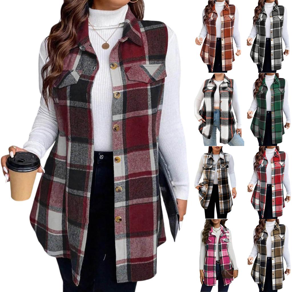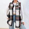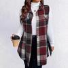 Damska Moda Plus Size Szczotkowana Krata Kołnierz Bezrękawnik Średniej Długości
