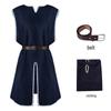 Średniowieczna męska luźna szata pulowerowa na Halloween z okrągłym dekoltem i paskiem