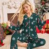 Jesienne Damskie Świąteczne Noworoczne Piżamy Zestaw Lounge Nadruk Płatków Śniegu Czerwone Bluzki i Spodnie Luźne 2-częściowe Stroje Lounge Odzież do Spania