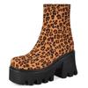 Platformowe Damskie Botki do Kostki Punk Wysokie Obcasy But Motocyklowy Flock Czarny Leopard Jesień Zima Buty Imprezowe Damskie Duży Rozmiar