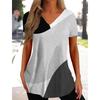 Summer V-neck 3D Printed Irregular Geometric Pattern Top Fashionable Casual Short Sleeved Women's T-shirts