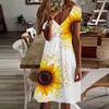 Letnia moda damska dekolt w serek z krótkim rękawem i nadrukiem słonecznika, seksowne krótkie spódniczki