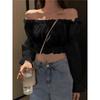 Top HNXC z jednym rękawem dla studentek, Krótki top z wysokim stanem i bufiastymi rękawami, Modny dla kobiet
