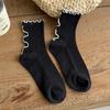 Black Fungus Lace Socks for Women, Mid-calf Socks for Spring and Autumn, Coffee-colored Socks for Autumn and Winter