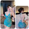 New Sexy Lace Mesh Flower Print Transparent Dress Backless Deep V Suspenders Sleeveless Wrap Hip Dress Charming Pure Desire