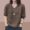 Wiosenno-letni sweter damski z dzianiny z dekoltem w serek, ażurowy, z długim rękawem, luźny