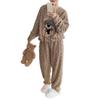 DayaEmmoTQ Cute Embroidered Flannel Long Crew Coral Cold Weather Plus Available in Three Colors for and Spring Women's Pajamas, Sleeves, Neck,