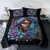3 szt. Niebieska Róża Lampart Śnieżny Zestawy Pościeli Czarna Kobieta z Dużymi Kolczykami Zestaw do Łóżka Kołdra z Wypełnieniem i 2 Poszewki na Poduszki