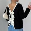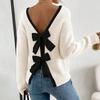 Damskie Jesienno-Zimowe Swetry Pulowery Moda Ozdoba Kokardą na Plecach Dekolt O Długi Rękaw Dzianinowe Swetry Top
