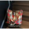 Plaid canvas bag women's new summer lazy wind crossbody shoulder bag large capacity commuter tote bag