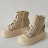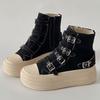 Women Platform Canvas Shoes Classic Casual Outdoor Versatile Sneakers Buckle Design High Top Boots Fashion Zipper Shoes Female