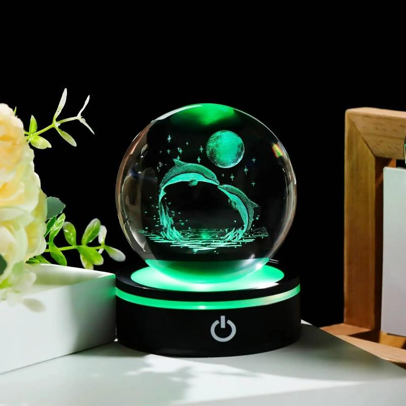 Kryształowa kula 3D Delfin Prezenty dla Kobiet Par Statua Lampa Szklane Figurki Zwierząt Dekoracja Domu