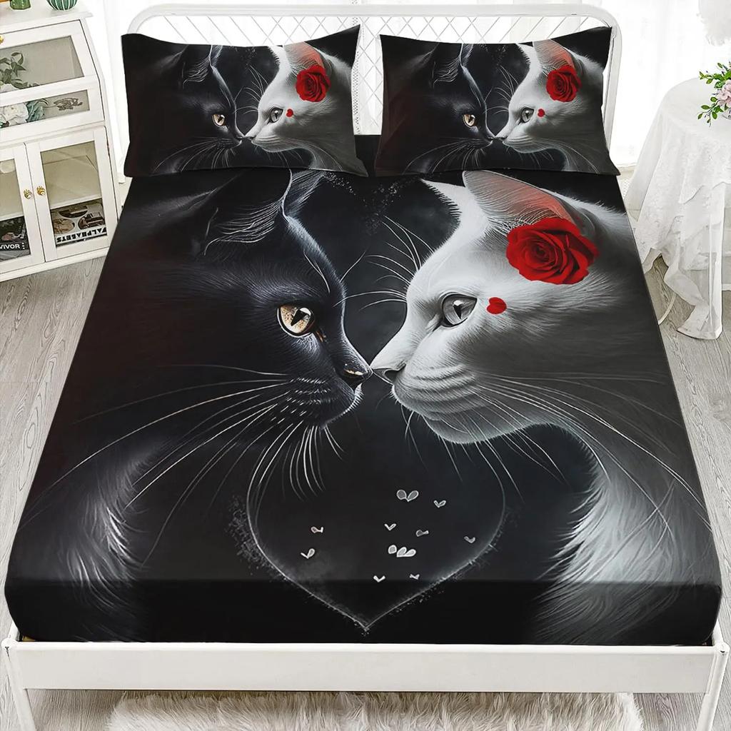 Urocze Koty Prześcieradło z Gumką, Koty Arkusze do Łóżka dla Dzieci Chłopców Dziewczynek Kawaii Zwierzę Zestaw do Łóżka Miękkie Trwałe Prześcieradła Pojedynczy Rozmiar
