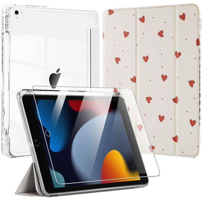 Coque + Verre Trempé - E.F.Connection - pour iPad 10,2" - Antichoc - Support - Cœurs Rouges