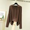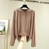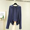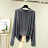 Damski Casualowy Oversizowy Modalowy T-shirt z Długim Rękawem i Kapturem - Wyszczuplający, Cienki, Wiosenny Top z Filtrem Przeciwsłonecznym
