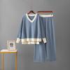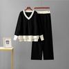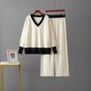 Damski europejsko-amerykański sweter z dekoltem w serek i spodnie z szerokimi nogawkami, dwuczęściowy garnitur na jesień/zimę 2025.