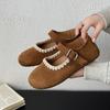 Autumn and winter new round head shallow mouth Mary Jane shoes women's gentle lady style flat-soled beanie shoes women's embroidered ballet shoes